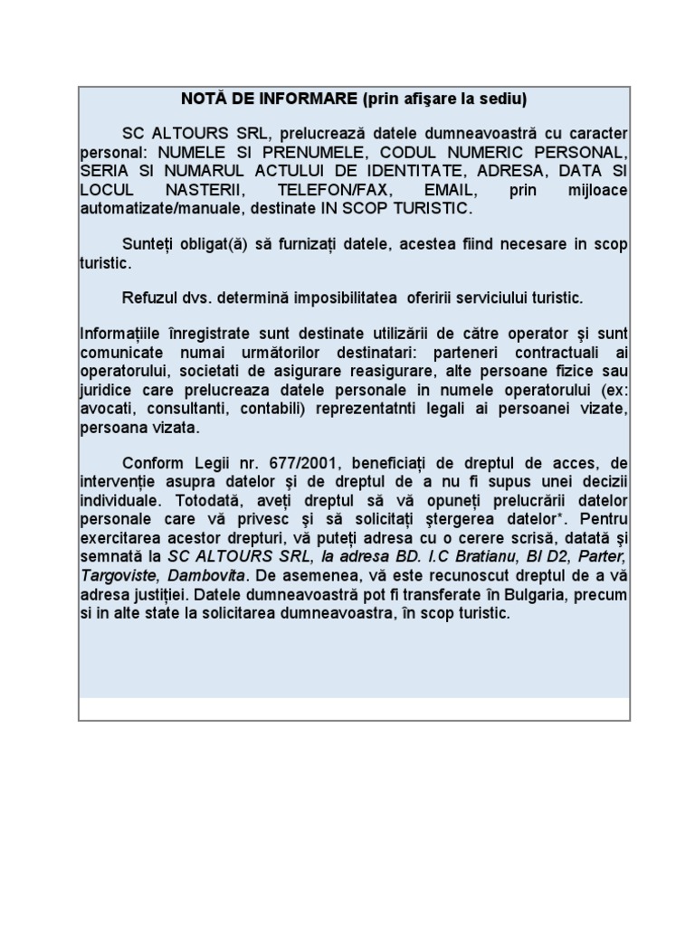 Nota de informare exemplu. Nota de informare privind prelucrarea datelor personale generalitati. Notă de informare privind protecţia datelor personale. Notă de informare cu privire la prelucrarea1 datelor personale. începand cu data 25 mai 2018 a intrat în vigoare regulamentul ue 2016 679 al parlamentului european şi al consiliului din 27 aprilie 2016 pentru protecţia persoanelor fizice cu privire la procesarea datelor personale şi libera mişcare a acestor date şi abrogarea directivei 95 46.