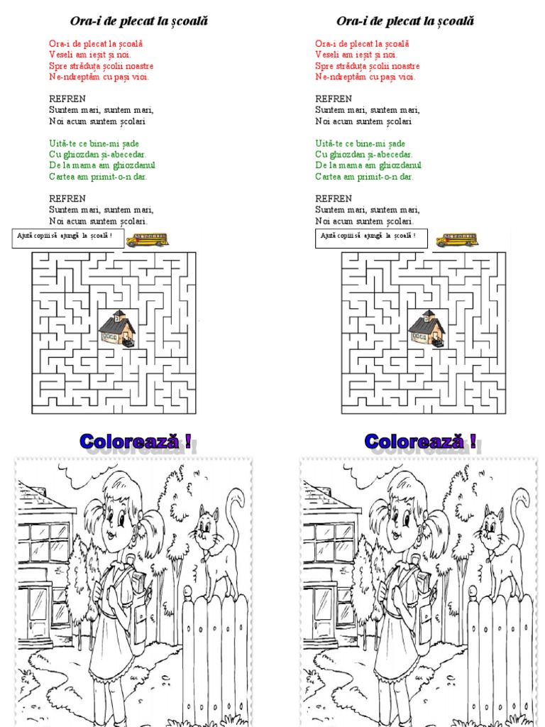 Contine textul cântecului un labirint o imagine de colorat. Ora i de plecat la şcoală veseli am ieșit și noi pe străduța şcolii noastre ne îndreptam cu pași vioi. Marius băbăscu a plecat la școală și nu a mai revenit la domiciliu. Ora i de plecat la scoala 5f5ffdc.