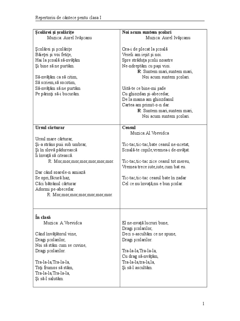 Ora i de plecat la şcoală. Suntem mari suntem mari noi acum suntem școlari. Versuri ora i de plecat la scoala cantec despre scoala. învăţământ primar educatie muzicala fişe de lucru clasa 1. Ora i de plecat la școală veseli am pornit și noi spre străduța școlii noastre ne ndreptăm în pas vioi.