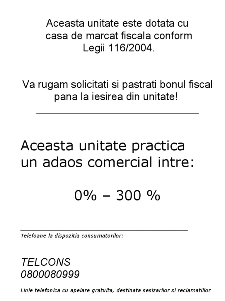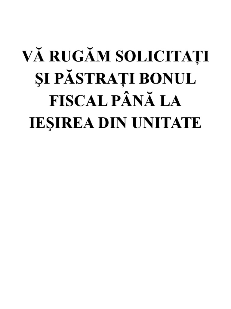 Vă Rugăm Solicitaţi Si Păstraţi Bonul Fiscal Pană La Iesirea Din Unitate