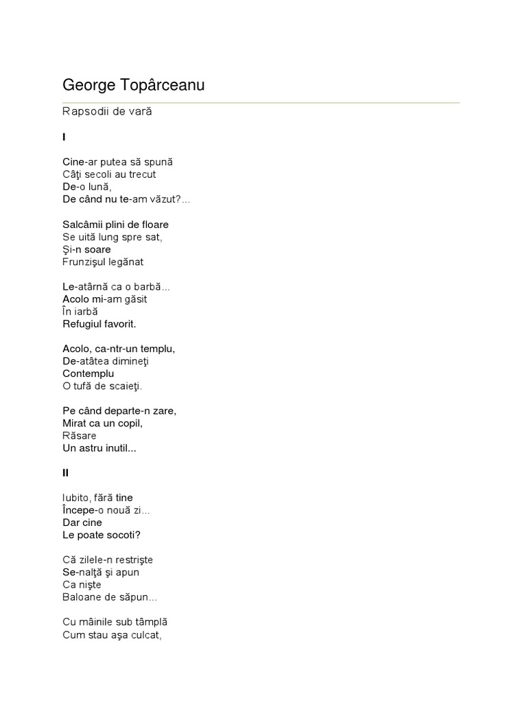George Toparceanu Poems Rapsodii De Vara